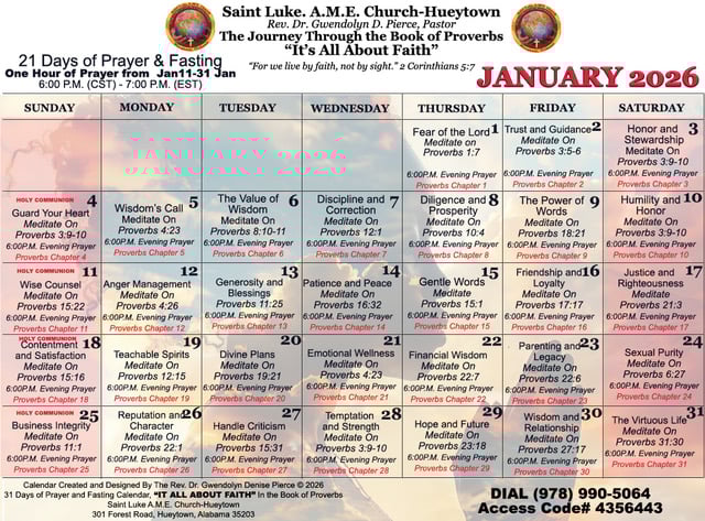Saint Luke African Methodist Episcopal Church – Hueytown, Alabama. A church developing disciples for Jesus Christ. Committed to serving the people in the community and helping them to serve a supernatural God and having supernatural faith. Here, we love Jesus, the community, and worship a supernatural God to win and save souls for the Kingdom. Our church is a place where you can strengthen your faith and build a stronger relationship with the Almighty God. Our worship services are currently held via teleconference during site renovations.